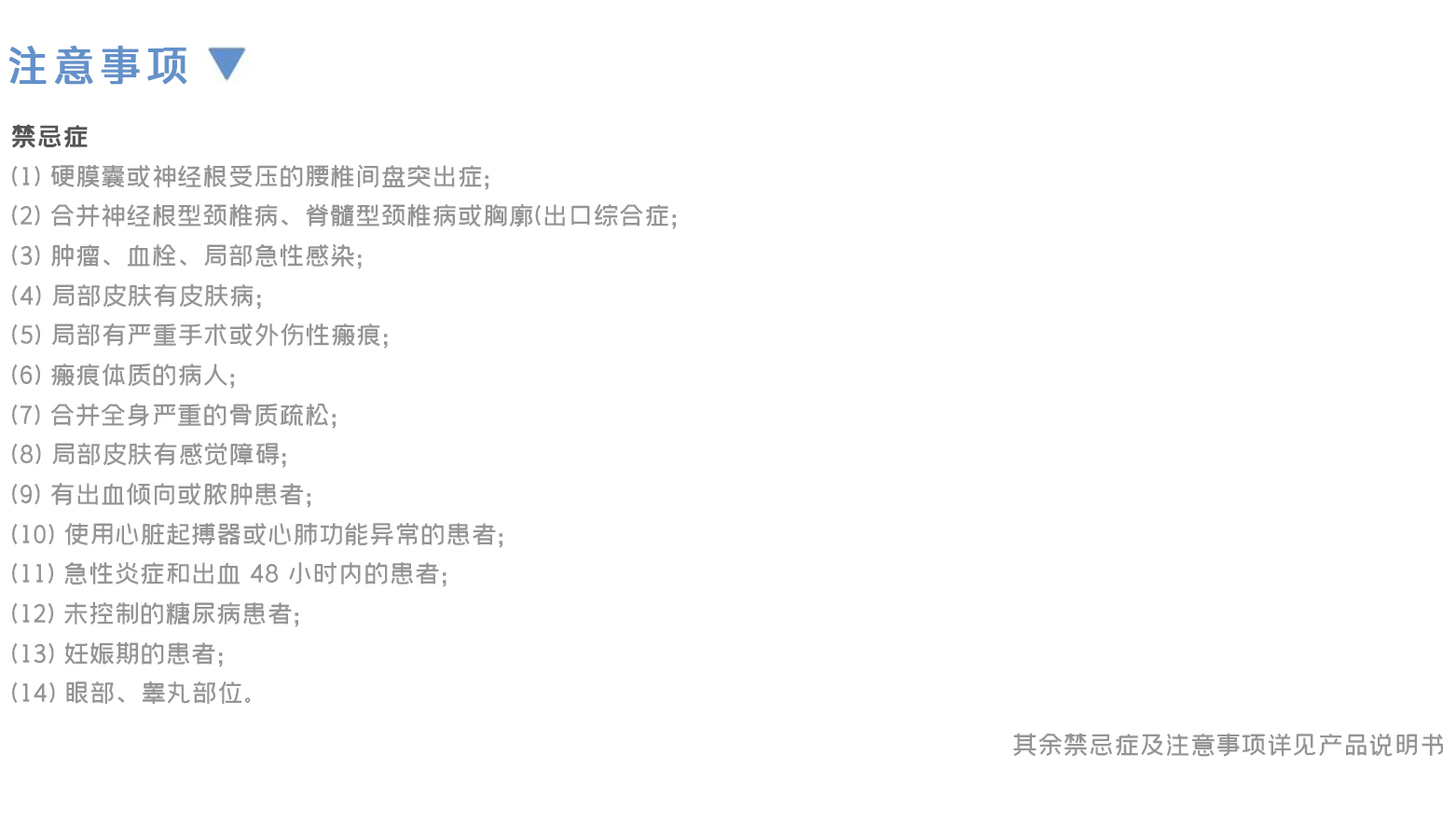 適(shi)應癥(zheng):適(shi)用(yong)于人體頸(jing)肩部、腰(yao)腹部和四肢部位慢性軟組織損傷性疼(teng)痛的治療。