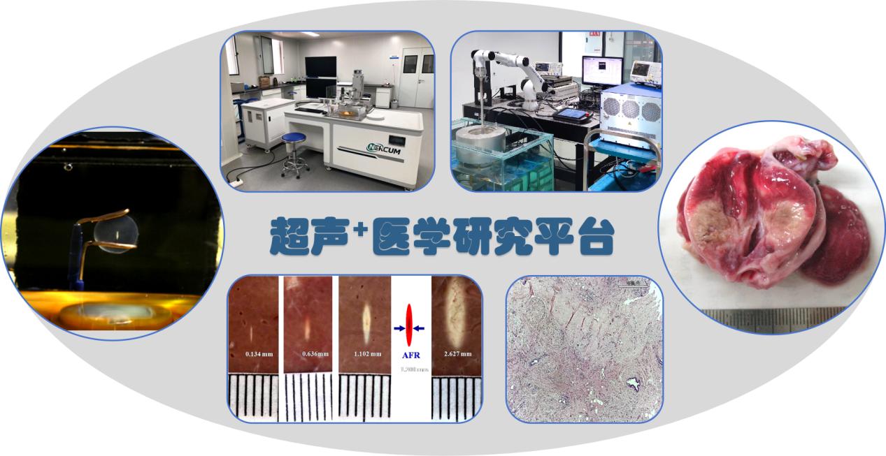 技術平臺旨在研究聚焦超聲治療中的關鍵核心問題 - 超聲治療時產生的生物效應,通過基礎研究發展創新的超聲激勵與監控技術,提高臨床治療的安全性、 有效性和效率,并積極拓展超聲治療的范疇,探索新型治療策略。平臺下設超聲生物效應實驗室(USB Lab)、聲空化與熱機制實驗室(ACT Lab)和超精度效應研究實驗室(SUPER Lab)。 平臺內主要設備包括:超聲圖像引導的高強度聚焦超聲治療系統,低強度超聲實驗儀器、B超監控超聲輸出小動物實驗系統,三維步進掃描系統,雙頻共聚焦超聲換能器,高功率射頻放大器,激光測振儀,高速相機,水聽器, 鎖相環與小信號濾波放大器,高帶寬數字示波器,信號發生器,六自由度機械臂,超聲影像系統等。