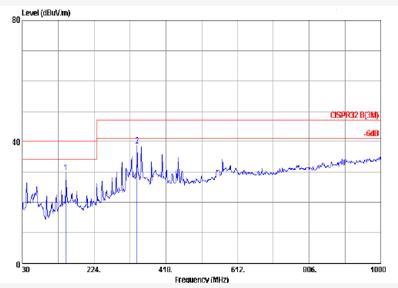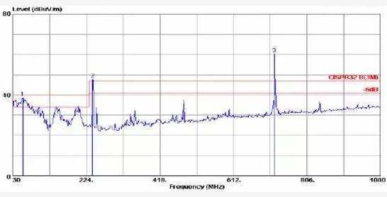 電路中加入濾波器-共模電感后共模干擾信號得到有效抑制,整改測試如下圖: