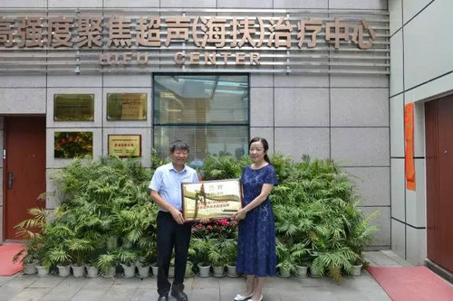 隨后,海扶刀®發明人王智彪教授給我院頒發了“首創全球7000例紀錄 聚焦超聲手術新里程碑”的榮譽牌。