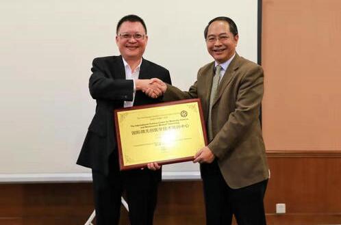 國際微無創醫學會副主席陳文直教授向中南大學湘雅三醫院院長張國剛院長授牌