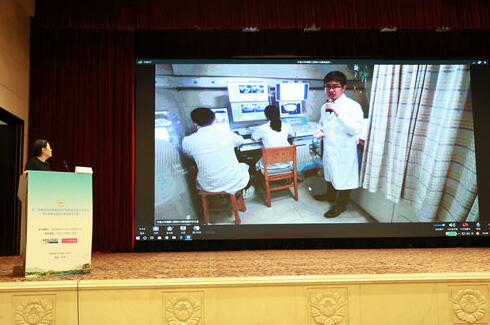 會上,薛敏教授分享了湘雅三醫院開展聚焦超聲治療的現狀,為使參會專家更直觀的了解不開刀、不流血、無創傷的FUS治療,薛敏教授現場連線湘雅三醫院聚焦超聲手術室,做了FUS治療子宮 的實況直播。