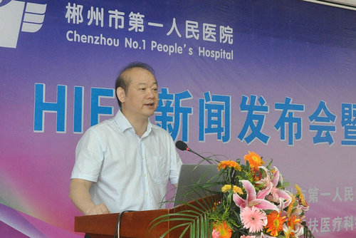 郴州市第一人民醫院黃仁彬院長致辭:為患者提供安全、有效、優質的醫療服務一直是醫院的辦院宗旨。郴州市人民醫院婦科是省級重點學科,學科水平在一直在地市級醫院排名前列,醫院婦科率先在湘南地區開展HIFU微無創治療對推動郴州微無創醫學的整體發展,提高微無創技術的臨床應用,具有重要意義。有利推動了以病人為中心的多學科聯合診療模式的發展。HIFU微無創治療科研合作基地和海扶治療中心的建立,也標志著醫院微無創治療的發展又向前邁進了一步,提升了醫院的綜合實力。