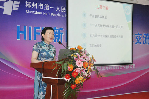 來自中南大學湘雅三醫院婦產科的薛敏教授做了《HIFU治療子宮腺肌病》的講座。薛敏教授首先祝賀郴州市第一人民醫院HIFU微無創治療中心的成立,并指出醫院科室學科要有所發展,就要不斷學習和引入新的技術,此次醫院婦科引進HIFU微無創治療這種不開刀、不流血、保留器官的治療技術,相信能為郴州的廣大女性患者帶來更多的福祉,并進一步推動郴州微無創醫學的發展。