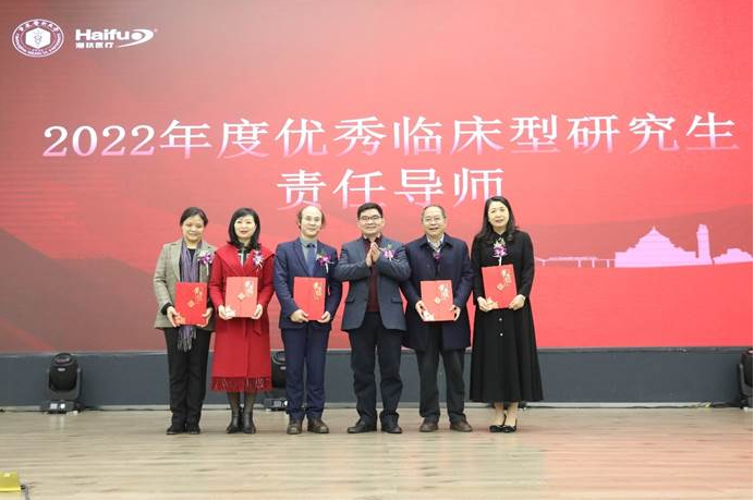 表彰儀式(shi)首先頒(ban)發的是(shi)本年度獲得“優秀臨床型研(yan)究(jiu)生責(ze)任(ren)導師(shi)”獎(jiang),獲得此獎(jiang)項(xiang)共有(you)5位導師(shi),他(ta)們在研(yan)究(jiu)生培養過(guo)程(cheng)中表現突出,也是(shi)國家(jia)重(zhong)點實驗室(shi)研(yan)究(jiu)生全流程(cheng)培養工(gong)作(zuo)積極參與者,分別是(shi):柳州市婦幼保健院(yuan)曾定元教授(shou)(shou)、青島(dao)市婦女兒童醫(yi)院(yuan)趙(zhao)淑萍教授(shou)(shou)、綿陽市中心醫(yi)院(yuan)杜小波教授(shou)(shou)、超(chao)聲醫(yi)學工(gong)程(cheng)國家(jia)重(zhong)點實驗室(shi)陳文(wen)直教授(shou)(shou)和石(shi)丘玲教授(shou)(shou),由重(zhong)慶醫(yi)科大學黨委(wei)常(chang)委(wei)、副校長袁軍(jun)研(yan)究(jiu)員(yuan)為(wei)獲獎(jiang)者頒(ban)獎(jiang)。