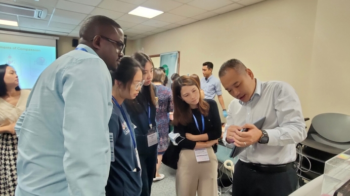 除此之外,會前25日,Shm Siraj醫生主持的電刀手術主題研討會上,來自重慶海扶醫院培訓部主任何敏醫生介紹了聚焦超聲消融技術的相關內容,現場醫護人員聽得聚精會神饒有興趣。隨后,不少觀眾在海扶醫療展臺上,認真觀看了聚焦超聲治療的工作原理,深入了解這項無創技術及海扶刀?設備。