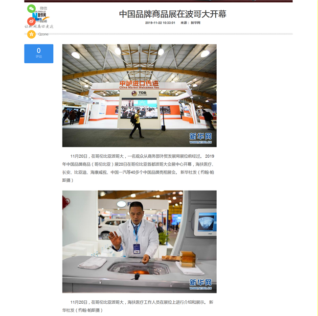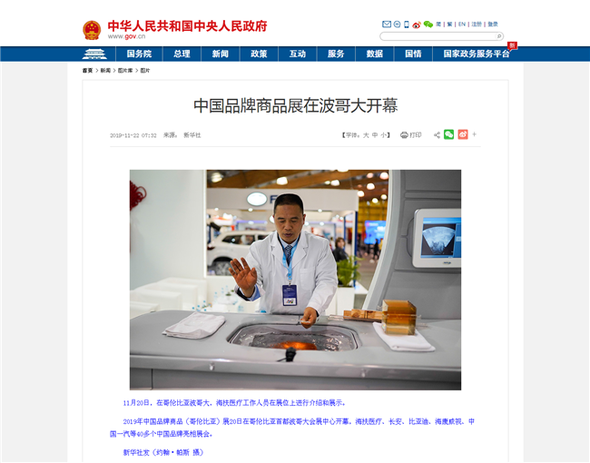 中(zhong)國政府網也發布這一(yi)新(xin)聞,對此次(ci)中(zhong)國品牌商品(哥倫(lun)比亞(ya))展進行(xing)報道,海(hai)扶醫療(liao)在其列(lie)。