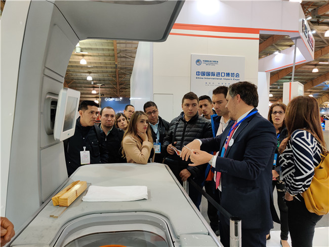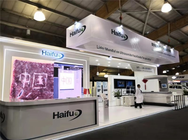 海扶醫療展示的(de)海扶刀®聚焦(jiao)超(chao)(chao)聲腫(zhong)瘤治療系統(tong)以及大(da)屏(ping)播放的(de)西語視頻,吸引不少觀(guan)眾駐足(zu),觀(guan)摩聚焦(jiao)超(chao)(chao)聲消(xiao)融(rong)手術(shu)模(mo)擬治療,并親身感受了超(chao)(chao)聲波穿透手掌(zhang)將(jiang)有機玻璃(li)片“消(xiao)融(rong)”,自己(ji)的(de)手掌(zhang)卻毫發無(wu)損(sun)的(de)“神奇”治療原理(li),對無(wu)創的(de)聚焦(jiao)超(chao)(chao)聲消(xiao)融(rong)手術(shu)贊嘆不已。